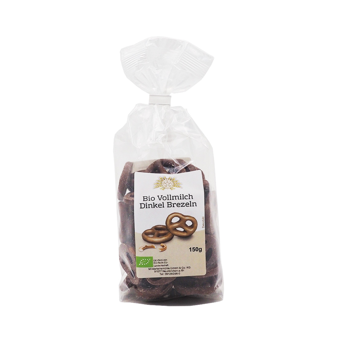 Vollmilchschokolade* 55% (Rohrrohrzucker*, Kakaobutter*, Vollmilchpulver*, Kakaomasse*, Dinkel-Laugenbrezeln* 45% (Dinkelvollkornmehl* 88%, Palmfett*, Meersalz, Hefe*, Gerstenmalzextrakt*, Säureregulator: Natriumhydroxid (Brezellauge)).