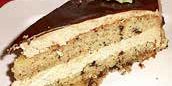 Eier, Zucker und heißes Wasser schaumig schlagen, Nüsse, Mehl, Backpulver und Schokoraspeln unterheben.